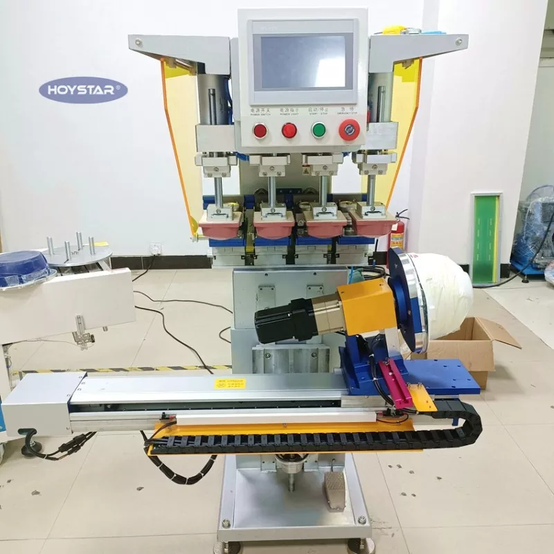 Mamili ng customized na 4 Color Pad Printing Machine Para sa Helmet mula sa Dongguan Hoystar Machinery Co., Ltd., na isa sa mga tagagawa at supplier sa China. Ang HOYSTAR 4 Color Pad Printing Machine For Helmet na ito ay nilagyan ng PLC touch screen control panel na madaling gamitin. Nagtatampok ang makinang ito ng servo motor control para sa awtomatikong rotary printing, na nag-aalok ng mga opsyon para mag-print sa 1 gilid, 2 gilid, o 4 na gilid ng helmet. Ang worktable ay hinihimok pakaliwa/kanan, rotary angel, maaaring isaayos ang mga taas ng produkto. Ang bawat printing head ay independiyenteng adjustable at maaaring i-set up nang hiwalay.