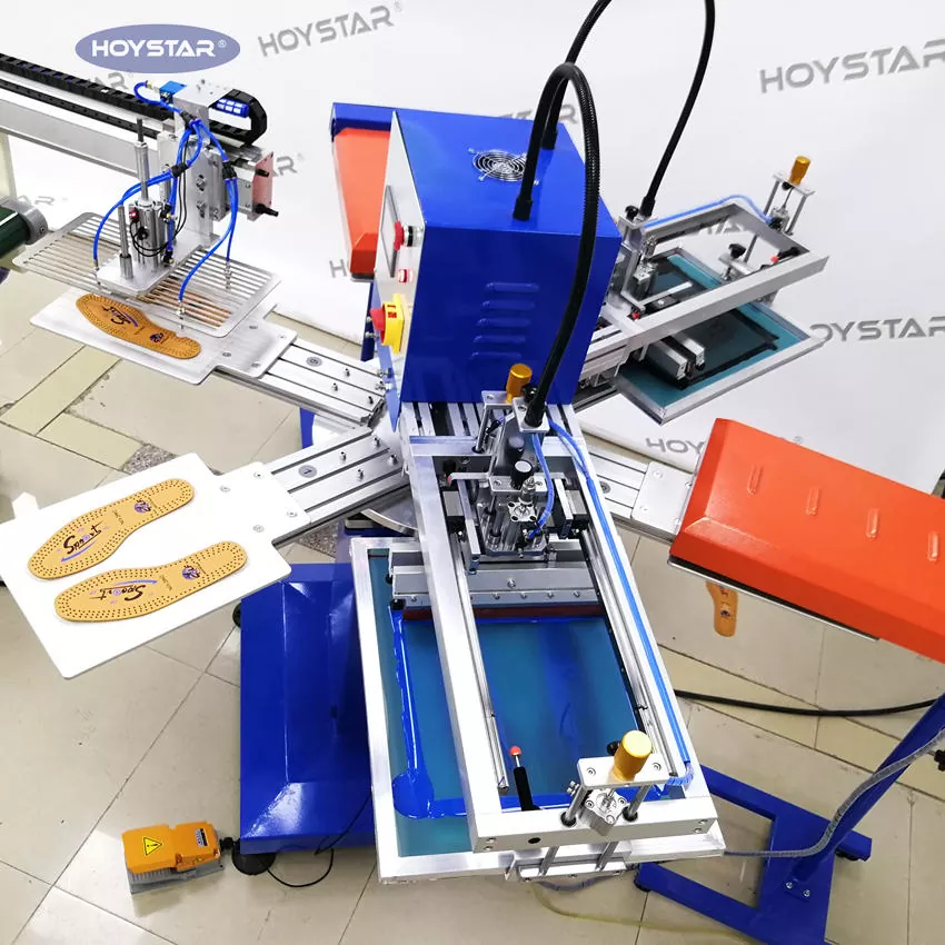 Ang Automatic 2 Color Screen Printing Machine para sa Shoe Insole na may 6pcs workstation at 2pcs drying system