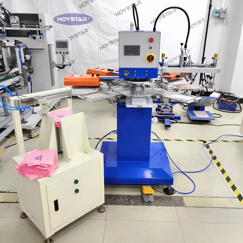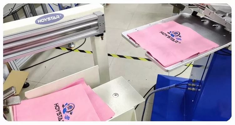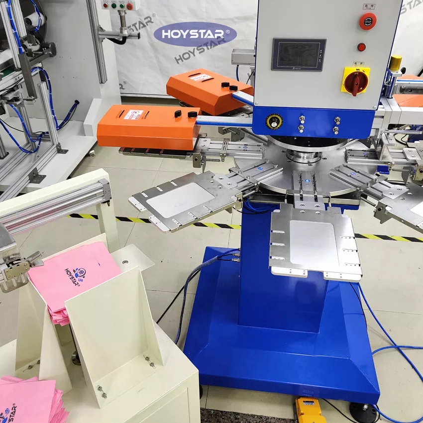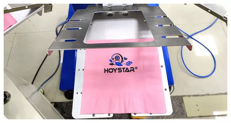 Ang HOYSTAR ay isang maaasahang tagagawa at supplier sa China; Ang HOYSTAR Automatic 2 Colors Napkin Screen Printing Machine na ito ay partikular na idinisenyo para sa ganap na awtomatikong pag-print sa mga napkin. Ang naka-streamline na proseso ng pag-imprenta nito ay nagbubukas tulad ng sumusunod: manu-manong i-load ang mga napkin sa makina—awtomatikong pag-print ng unang kulay—awtomatikong pagpapatuyo—awtomatikong pag-print ng pangalawang kulay—awtomatikong pagpapatuyo—awtomatikong pagbabawas—at awtomatikong pagkolekta ng produkto.