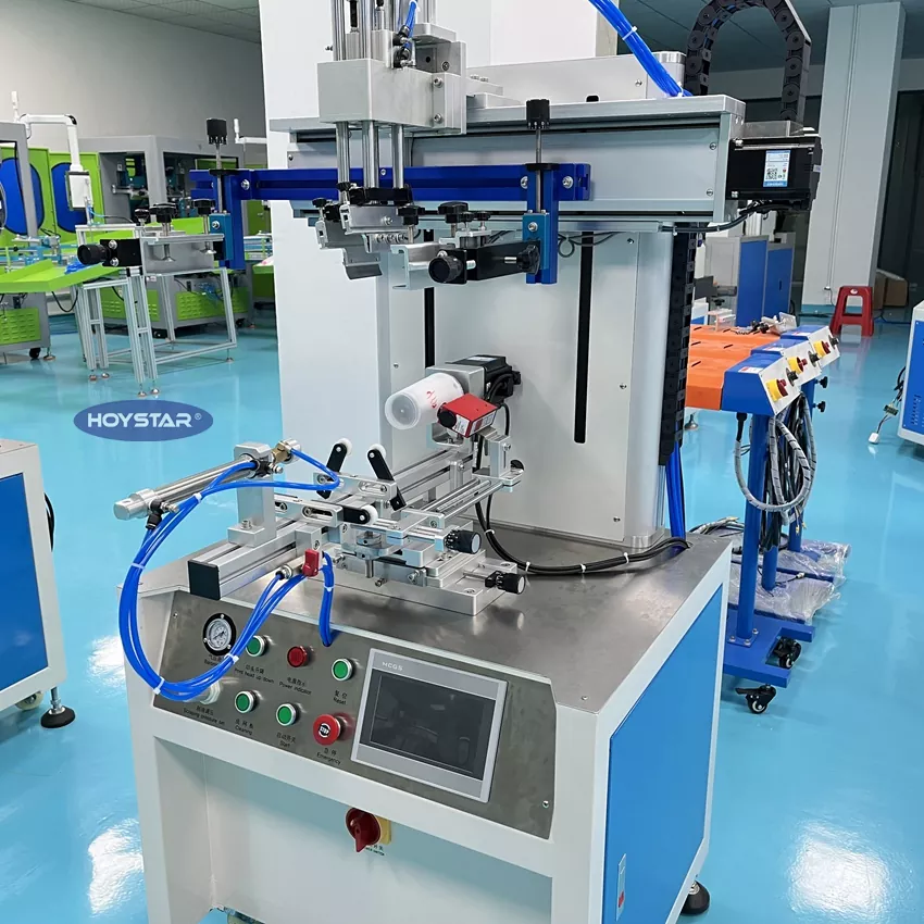 Bilang propesyonal na tagagawa sa China, nais naming bigyan ka ng mataas na kahusayan na HOYSTAR CNC Bottle Cup Cylindrical Screen Printing Machine
