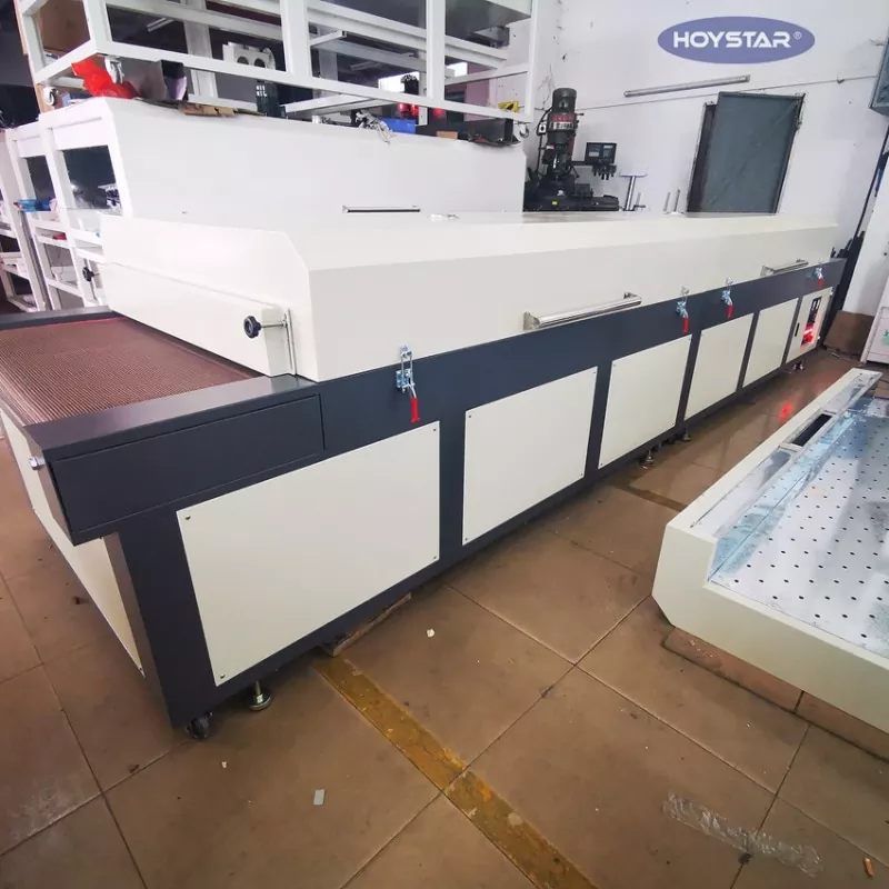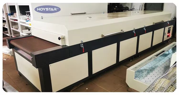 Bilang propesyonal na tagagawa sa China, gusto naming ibigay sa iyo ang mataas na kahusayan na HOYSTAR Large Infrared Dryer Machine na may Conveyor Belt. Angkop para sa pagpapatuyo ng iba't ibang produkto—gaya ng mga tela, flag, banner, aluminum sheet, salamin, papel, at plastik—pagkatapos ng mga proseso tulad ng screen printing, pagpipinta, hot-setting adhesive application, inkjet printing, at higit pa.
