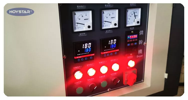 Ang makina ay nilagyan ng isang panel ng pagpapatakbo. Ang temperatura ng pagpapatayo ay maaaring malayang maisaayos upang matugunan ang iyong mga kinakailangan sa pagpapatuyo.