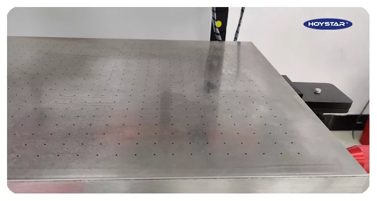 12. Mataas na lakas ng worktable na may pantay na distributed na mga butas sa pagsipsip at malakas na pagsipsip ng vacuum para sa tumpak na pagpaparehistro.